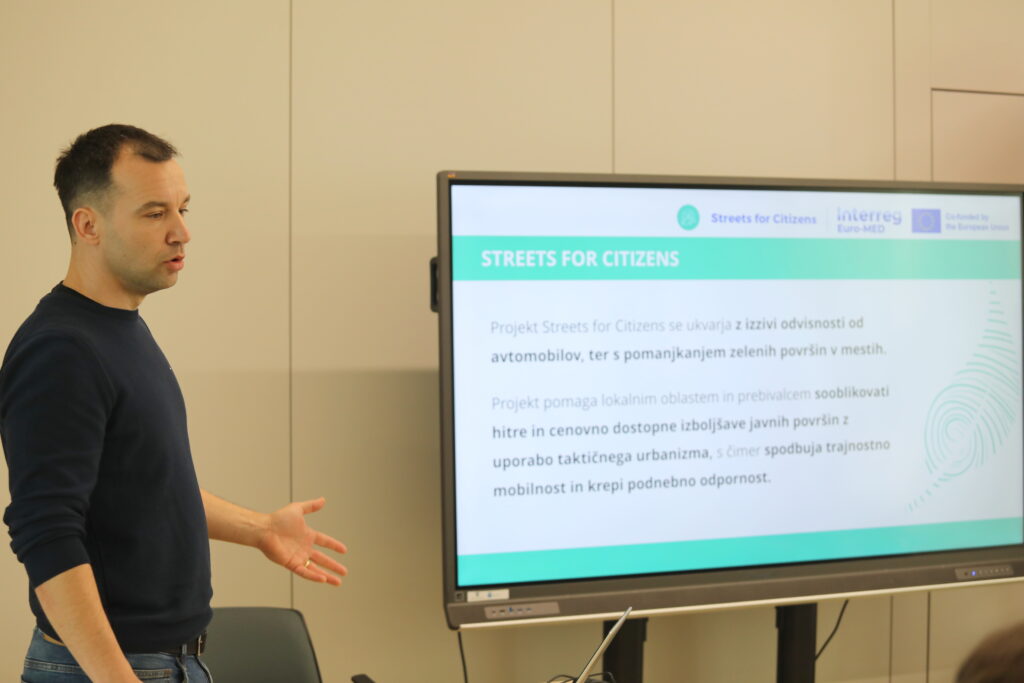Peter Meglič z Javnih služb Ptuj je predstavil projekta Streets for Citizens in RealUrbanGreen, ki se osredotočata na izboljšanje kakovosti mestnega prostora s taktičnimi, torej enostavnimi, cenovno dostopnimi in časovno prilagodljivimi rešitvami za ozelenjevanje mestnega jedra. Poudaril je, da že začasne rešitve, kot so mobilna korita za drevesa, omogočajo hitro in učinkovito vključevanje zelenja v urbano okolje, kadar želimo rešitve najprej preizkusiti ali kadar je izvedba trajnih posegov onemogočena ali otežena. V urbanih središčih se namreč prizadevanja za ozelenjevanje srečajo s skrbjo za varovanje kulturne dediščine in arheoloških najdb, kjer praksa, ki bi sočasno upoštevala oboje – udobje ljudi in varovanje dediščine – pri nas še ni razvita ali uveljavljena. Ob tem se je prav tako izpostavila skrb nad zasnovo trgov brez dreves, podrasti in zelenih ter vodoprepustnih površin, ki postajajo neustrezen odgovor na izzive, ki jih prinaša naraščajoča vročina in ekstremni vremenski pogoji. Naravne prvine danes niso zgolj estetska izbira, ampak nujna rešitev za blažitev vročinskih otokov in izboljšanje kakovosti življenja v mestih.