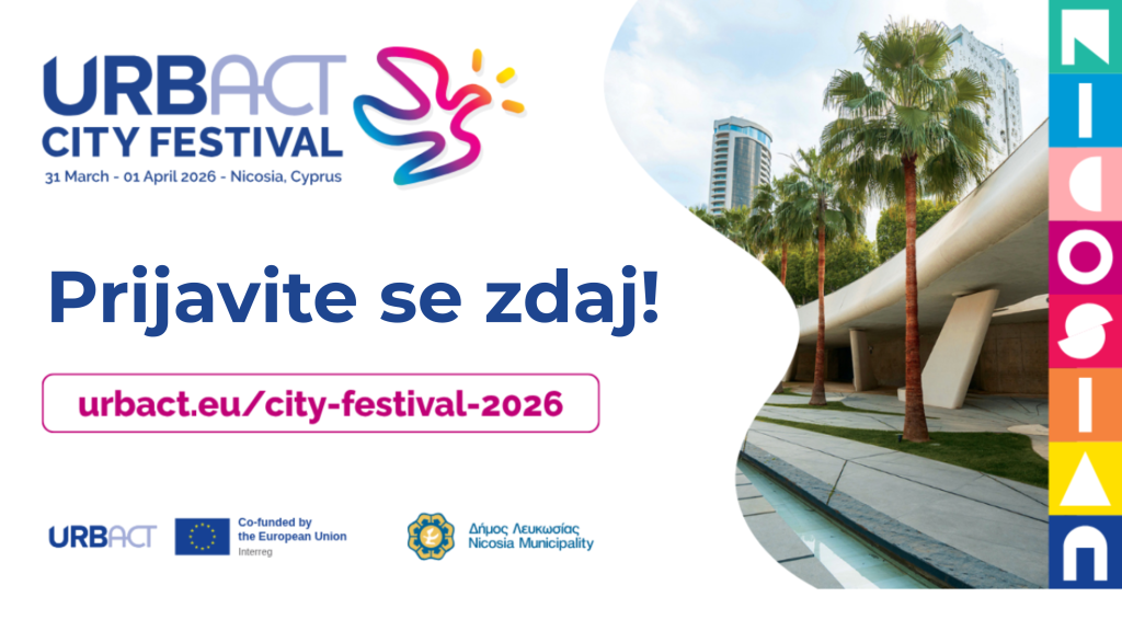 URBACT festival mest 2026 bo potekal med 31. marcem in 1. aprilom v Nikoziji na Cipru. Na tem osrednjem URBACT dogodku se bo zbralo 500 navdušencev nad mesti iz vse Evrope, ki se bodo navdihovali z 273 lokalnimi ukrepi URBACT mest, raziskovali ključne urbane teme ter gradili mreže za nov URBACT razpis za prenosne mreže. Prijave so zdaj odprte. Prijavite se čim prej, da si zagotovite svoje mesto.